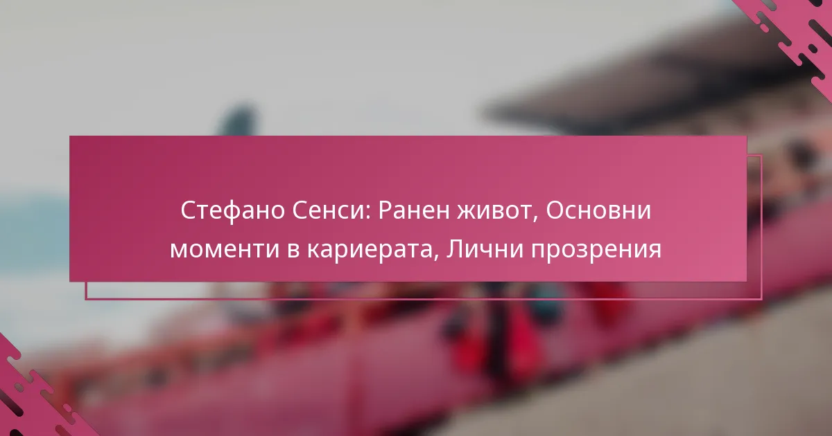 Стефано Сенси, роден в Италия, развива страст към футбола в подкрепяща семейна среда, която полага основите на неговата професионална кариера. Като талантлив полузащитник в Серия А, той е постигнал забележителен успех чрез ключови трансфери и приноси към клубовете и националния отбор. Освен атлетичните си способности, динамичната личност на Сенси и личните му прозрения разкриват дълбочината на характера му както на терена, така и извън него.